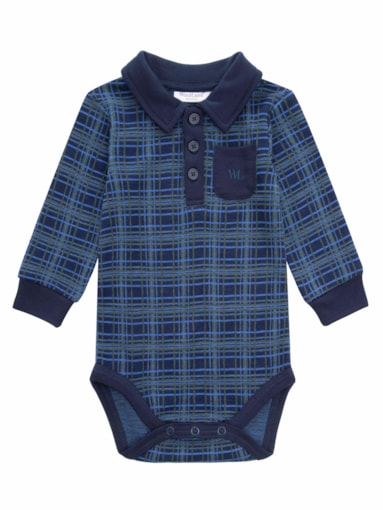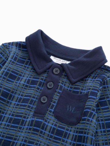 Ullbody til baby i nydelig rutemønster i premium 100% merino ull. Dekorert med lomme på brystet og krage som kneppes ned forran.