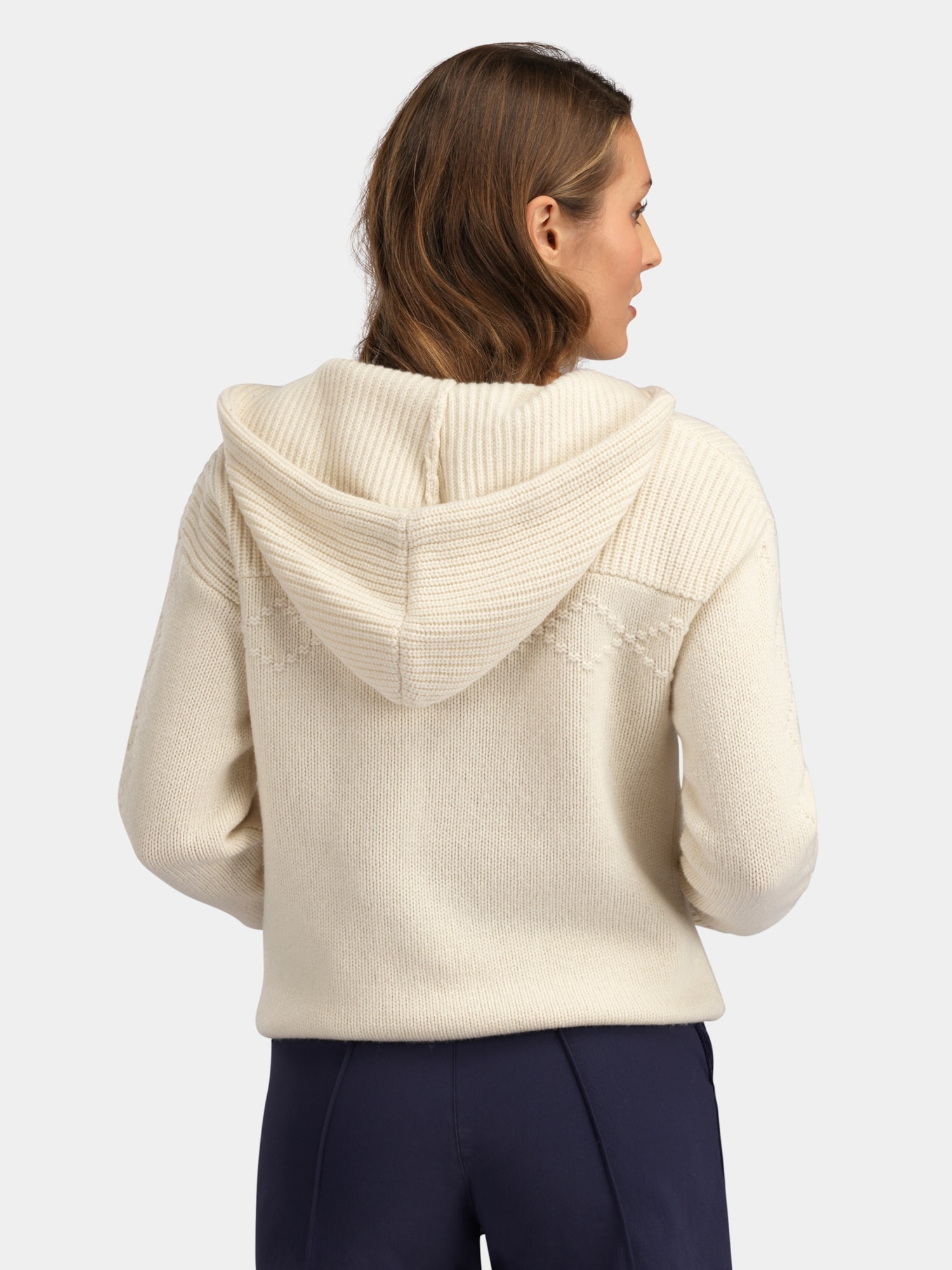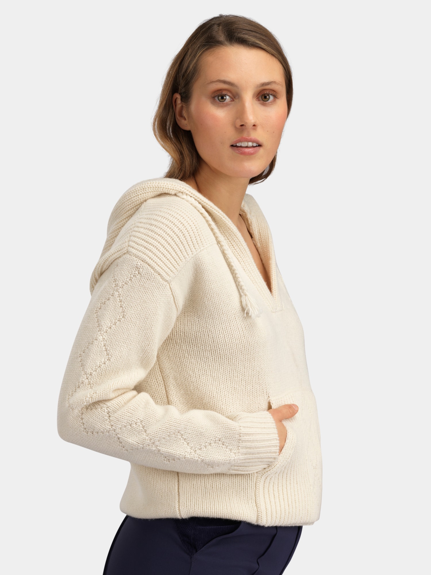 Gausta strikket hettegenser til dame, i et vintage-inspirert design med kraftig strikk, signaturlogo og mønsterdetaljer. En varm og karakteristisk hettegenser i ull, laget for deg som ønsker en sporty retrostil.