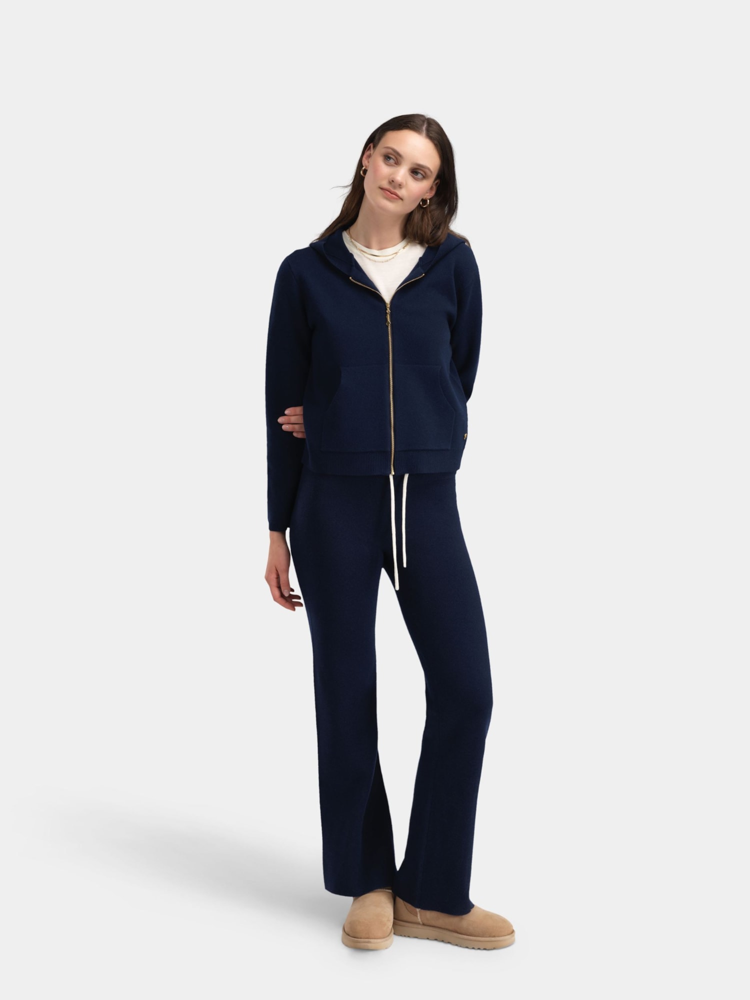 • Hemsedal ulljakke til dame er en eksklusiv strikket jakke laget av 90 % ull, som føles myk og behagelig mot huden. Jakken har en elegant glidelås med gulldetaljer og praktiske stikklommer på hver side. Kombinert med Hemsedal Strikket Ullbukse skaper den det ultimate loungesettet. Perfekt for både avslapning og hverdagsbruk.
