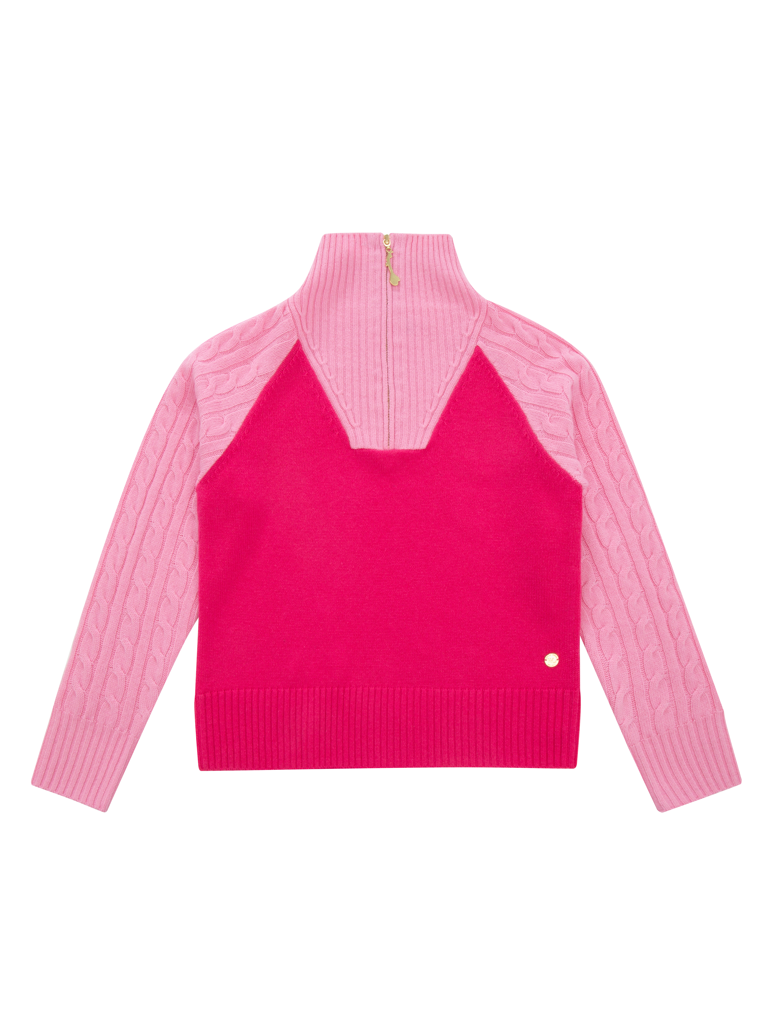 En eksklusiv ullgenser med strukturstrikk og høy hals med glidelås