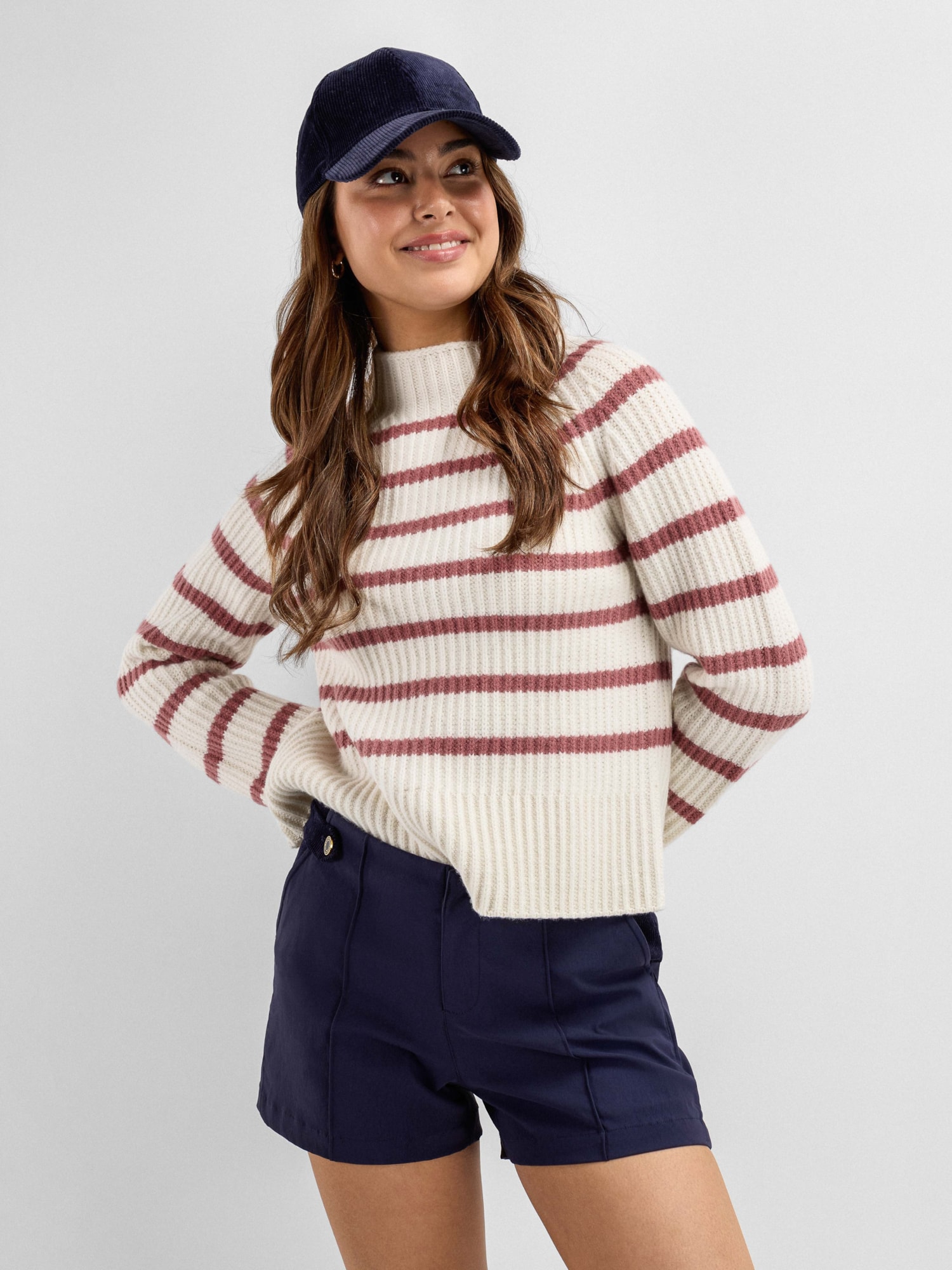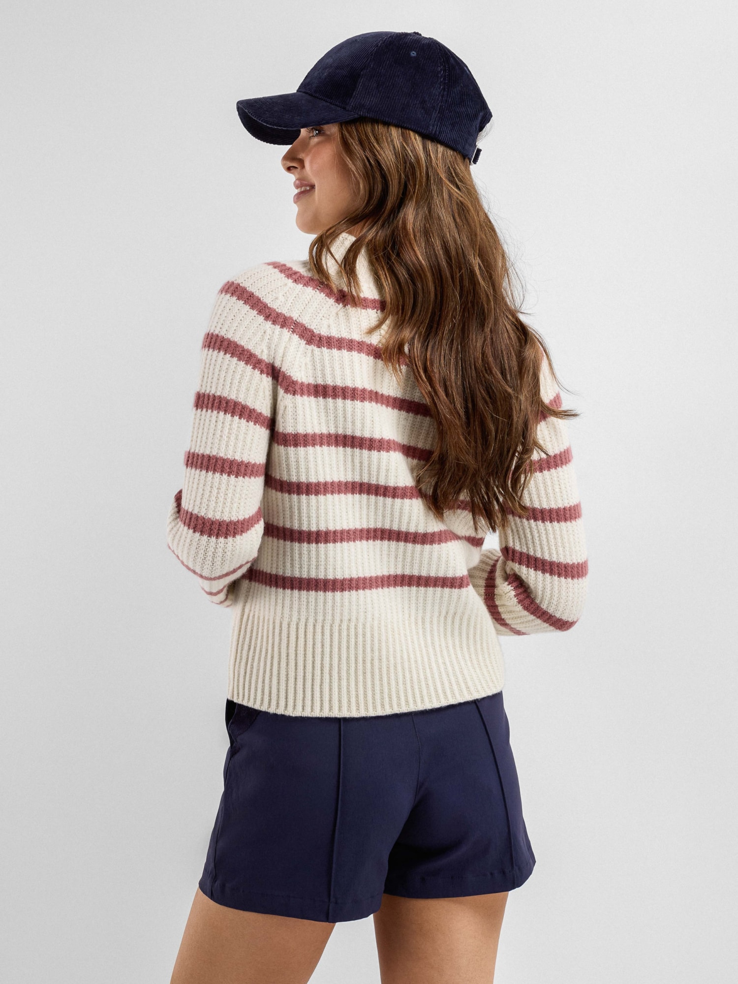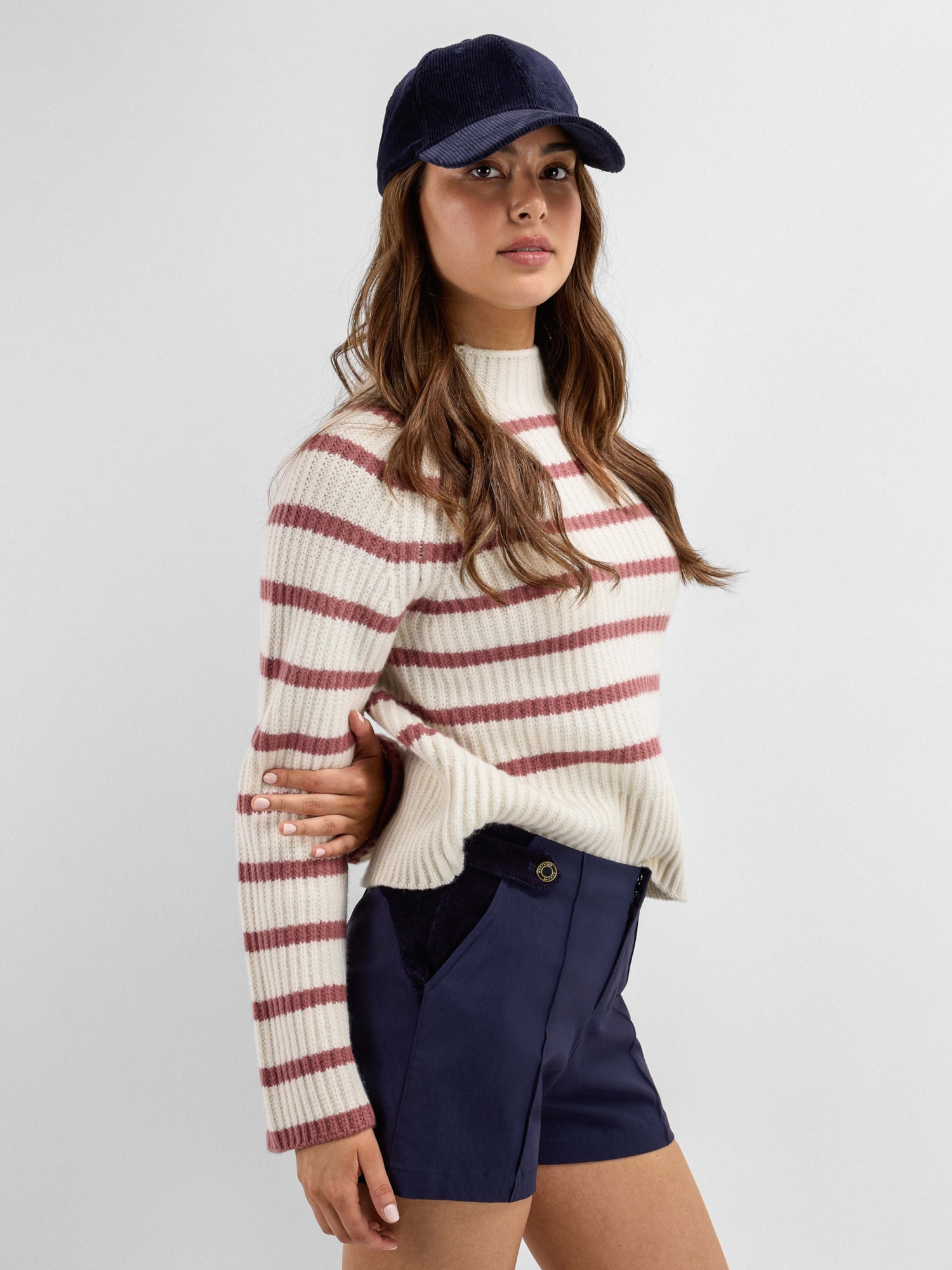 Kråkerøy Strikkegenser til dame, med et klassisk og maritimt uttrykk i strukturstrikk med brede kontrastfargede striper. En stilren favoritt for hverdag og fritid, laget i en eksklusiv blanding av kashmir og ull.