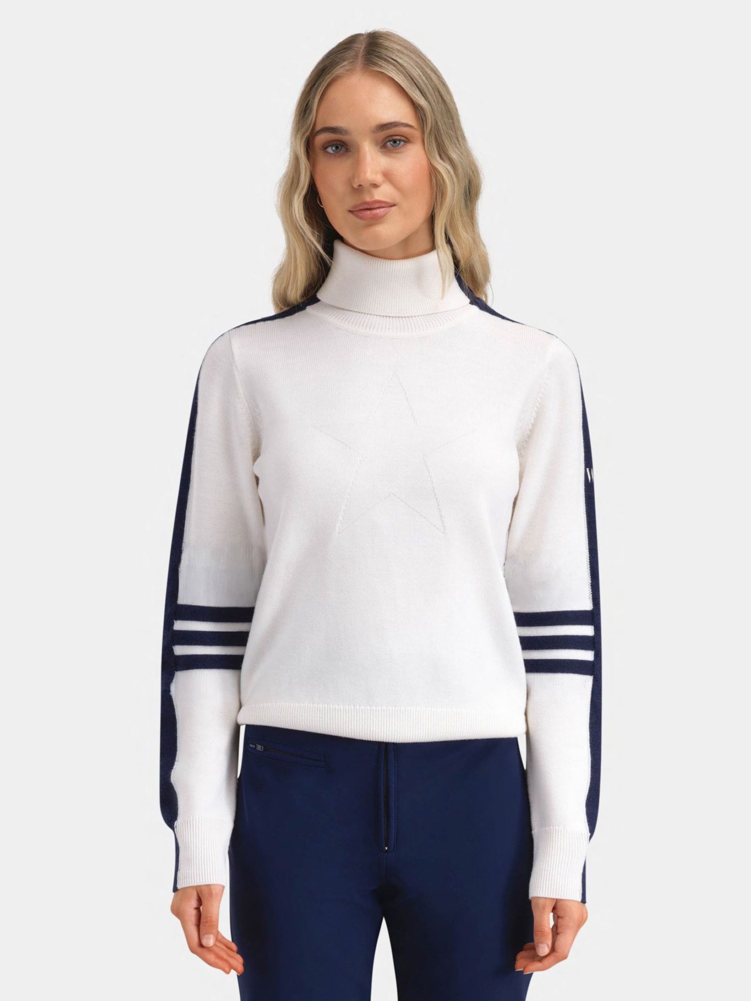 Modell i studio har på seg størrelse S og er 179 cm høy.