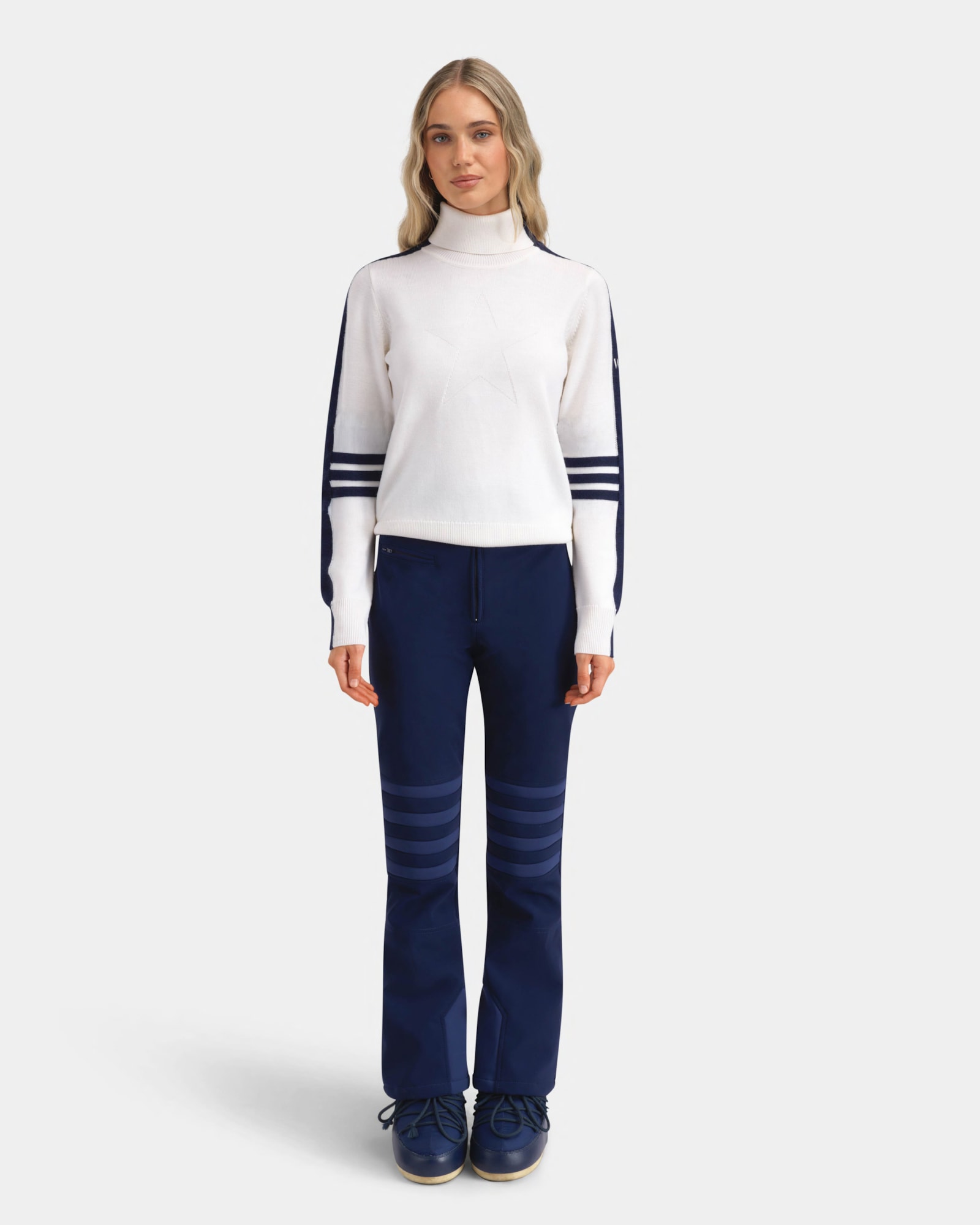 Modell i studio har på seg størrelse S og er 179 cm høy.
