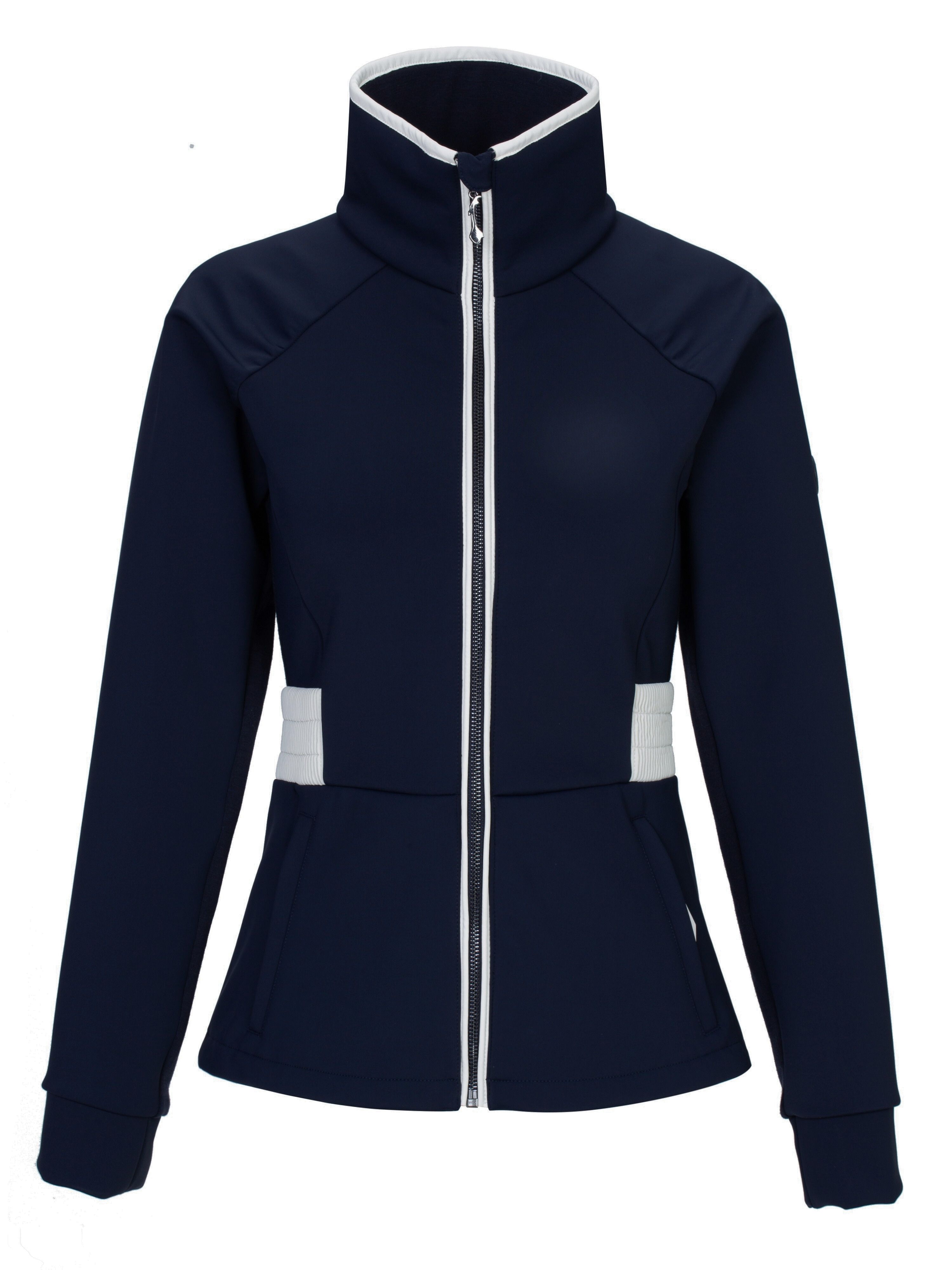 Feminin passform med høy krage og detaljer i imitert skinn. Praktiske lommer og elastiske detaljer gjør den komfortabel både på ski og til hverdags.