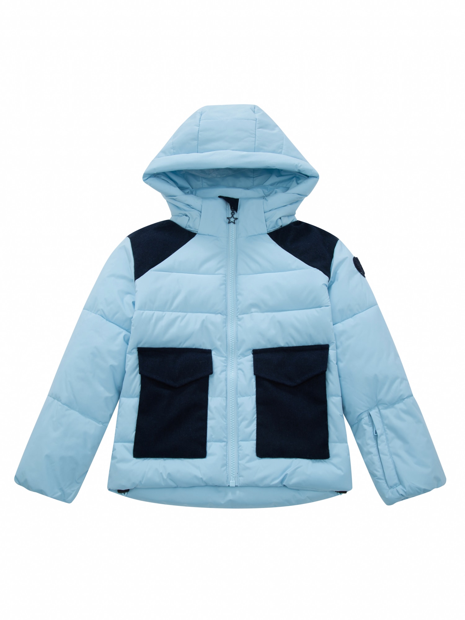 Vik Dunjakke til de minste er en sporty og varm jakke designet for aktive vinterdager. Den er lett, vindtett og vannavvisende med en vannsøyle på 5000 mm, og holder godt på varmen selv i kaldt vær.