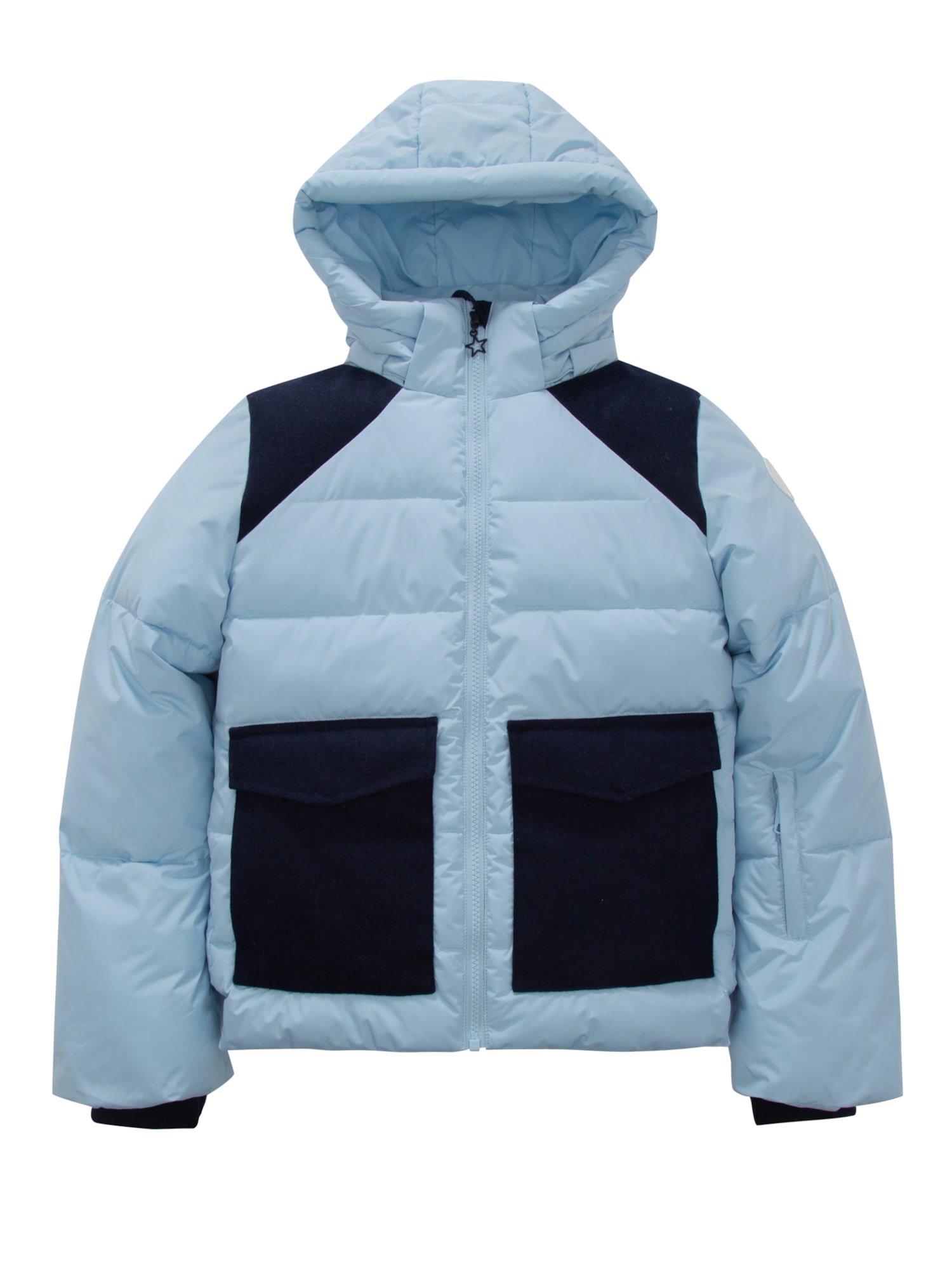 Jakken har en diskré skikortlomme på venstre arm, avtagbar hette og justerbar nederkant som gjør den praktisk både i bakken og i hverdagen. Kontrastpanel i ullblanding gir et moderne og eksklusivt preg, mens 3M Featherless Down-fyllet gir en lun og komfortabel følelse uten å være tung.